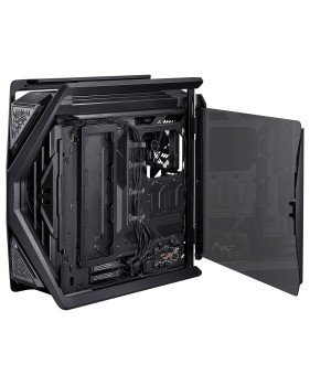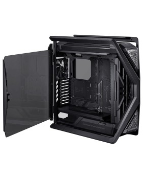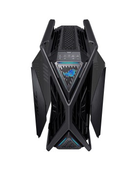 L'ASUS ROG Hyperion GR701 est un boîtier PC grand tour haut de gamme équipé du système Aura Sync RGB (façade rétro-éclairée), de 4 ventilateurs PWM de 140mm inclus dont 3 à l'avant, de panneaux latéraux en verre trempé et d'un châssis aluminium haute qualité. Il prend en charge les composants les plus performants du marché tels que les cartes graphiques jusqu'à 460 mm de longueur, les ventirads jusqu'à 190 mm de hauteur, les alimentations jusqu'à 240 mm de profondeur et les systèmes de watercooling All-In-One jusqu'à 420 mm.