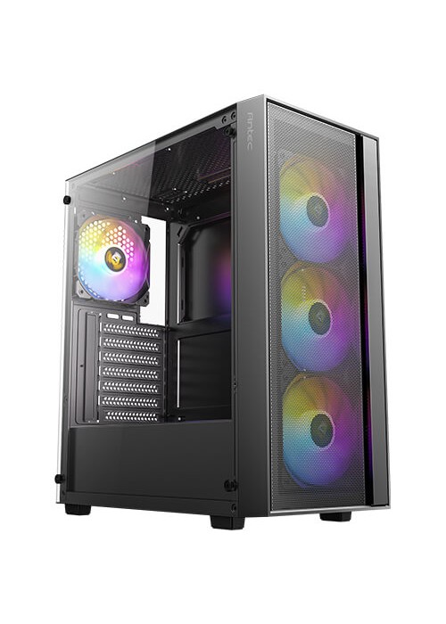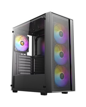 Les boîtiers Antec AX sont conçus pour les gamers et les passionnés de PC. Ce boîtier moyen tour Antec AX65 ARGB a été tout spécialement pensé pour vous qui recherchez une combinaison parfaite entre performance thermique, design moderne et personnalisation lumineuse. Grâce à son panneau avant en mesh géométrique et ses quatre ventilateurs ARGB 120 mm préinstallés, ce boîtier assure une circulation d'air optimale tout en offrant un spectacle visuel saisissant. Son panneau latéral en verre trempé de 4 mm met en valeur votre configuration, permettant d'admirer vos composants et l'éclairage ARGB synchronisable via la carte mère. Compatible avec les formats de cartes mères ATX, Micro-ATX et Mini-ITX, il offre une grande flexibilité pour assembler votre système selon vos besoins.