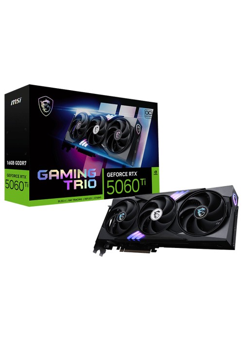 La carte graphique MSI GeForce RTX 5060 Ti 16G GAMING TRIO OC qui se base sur l'architecture révolutionnaire NVIDIA Blackwell se destine aux joueurs à la recherche de la carte graphique qui offre une expérience vidéoludique fluide tant en 1080p qu'en 1440p. Bénéficiant des dernières avancées en matière de graphismes. DLSS4, ray tracing et IA travaillent ensemble pour fournir des graphismes toujours plus détaillés et fluides. Les créateurs y trouveront aussi leur compte avec cette MSI GeForce RTX 5060 Ti 16G GAMING TRIO OC grâce à la puissance de l'IA associée à NVIDIA Studio.