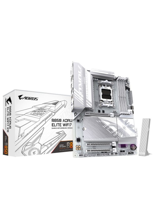 The Gigabyte B850 AORUS ELITE WIFI7 ICE motherboard is powered by the AMD B850 chipset , making it ideal for laying the foundations of a gaming configuration. Thanks to its AMD AM5 socket, it supports a AMD Ryzen 7000/8000/9000 processor. With 4 DDR5 slots, the B850 AORUS ELITE WIFI7 ICE can manage up to 256 GB. Its compatibility with the PCI Express 5.0 standard means you can use the latest graphics cards and M.2 NVMe SSDs for high performance. It boasts full connectivity with 2.5 GbE LAN, Wi-Fi 7 and Bluetooth 5.4, as well as USB 3.1 and 3.2.