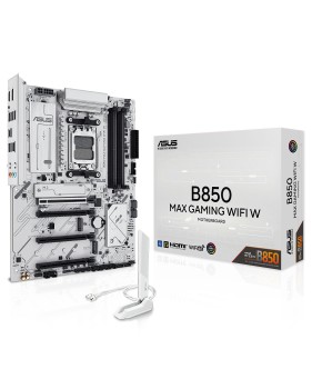 Basée sur le chipset AMD B850, la carte mère ASUS B850 MAX GAMING WIFI W est conçue pour accueillir les processeurs AMD Ryzen 7000/8000/9000 sur socket AM5. Elle est idéale pour l'assemblage d'une configuration gaming ou multimédia. Plus abordable que le chipset X870, elle prend en charge la DDR5, les cartes graphiques PCI-Express 5.0 et les SSD M.2 PCIe 5.0. Elle embarque une connectivité complète avec du réseau LAN 2.5 GbE, Wi-Fi 6E ainsi que de l'USB 3.1.