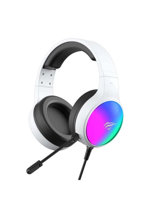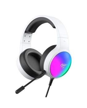Casque de jeu vidéo Havit H2043U, filaire de 1,7 m, couleur blanche. Idéal pour les jeux vidéo, avec son stéréo, isolation de bruit et commandes de volume. Profitez d'une expérience immersive grâce à son design sur-oreille et sa connectivité jack 3,5 mm.