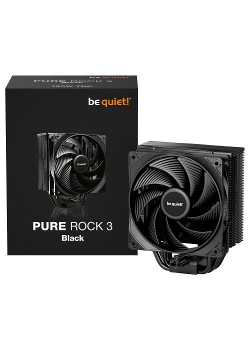 Le Pure Rock 3 Black proposé par be quiet! est un ventirad compact et performant aux configurations gaming et multimédia. Il arbore un design noir élégant, ode à la sobriété. Ses quatre caloducs 6 mm, sa plaque en nickel et son ventilateur Pure Wings 3 120 mm PWM permettent d'assurer au Pure Rock 3 Black un TDP de 190W. Son montage est facilité grâce à son pont de fixation préinstallé.