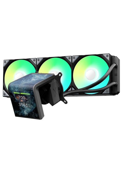 Le TRYX PANORAMA SE ARGB 360MM est un refroidisseur liquide pour processeur qui mêle refroidissement optimal tout en ajoutant une touche esthétique grâce à ses LED ARGB et à son écran AMOLED de 6.5" panoramique. Doté d'une pompe Asetek Adela et de tubes renforcés, le PANORAMA SE ARGB offre un excellent compromis entre efficacité et durabilité.