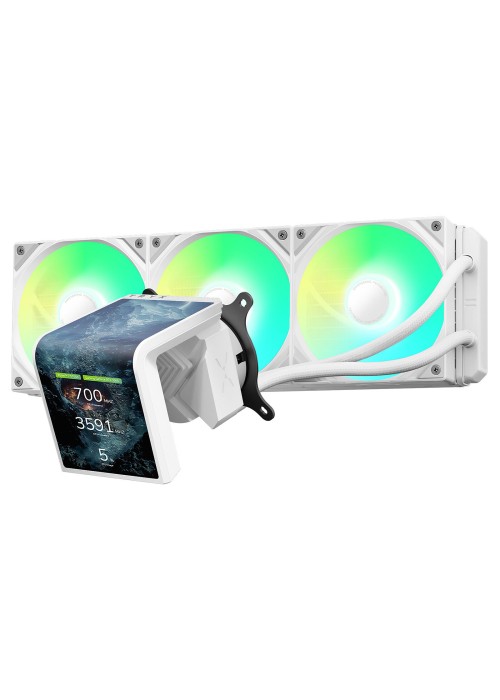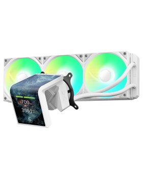 Le TRYX PANORAMA SE ARGB 360MM est un refroidisseur liquide pour processeur qui mêle refroidissement optimal tout en ajoutant une touche esthétique grâce à ses LED ARGB et à son écran AMOLED de 6.5" panoramique. Doté d'une pompe Asetek Adela et de tubes renforcés, le PANORAMA SE ARGB offre un excellent compromis entre efficacité et durabilité.